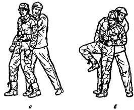 б). С переходом в переднюю стойку защищающийся левой рукой также захватывает